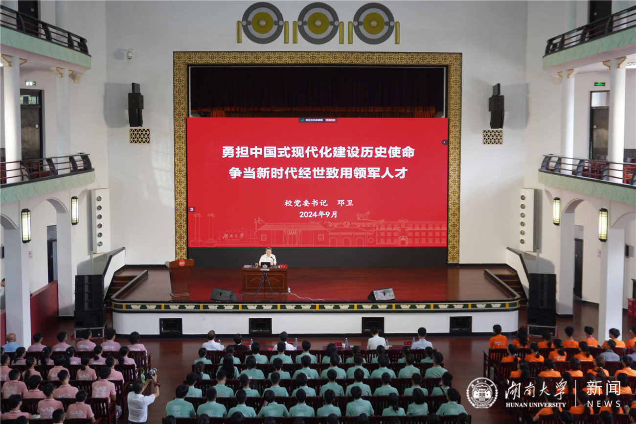 朝阳初上,序起新章。9月5日上午,湖南大学党委宣传部(新闻办公室)2024级新生开学典礼在南校区田径场举行。校长段献忠深情寄语2024级新同学:勤学创新 志存高远。校领导邓卫、段献忠、曹升元、蒋健晖、汪卫斌、孙炜、李肯立、唐珍名、陈仁朋,校长助理吕勇,校党委常委、校长助理...
