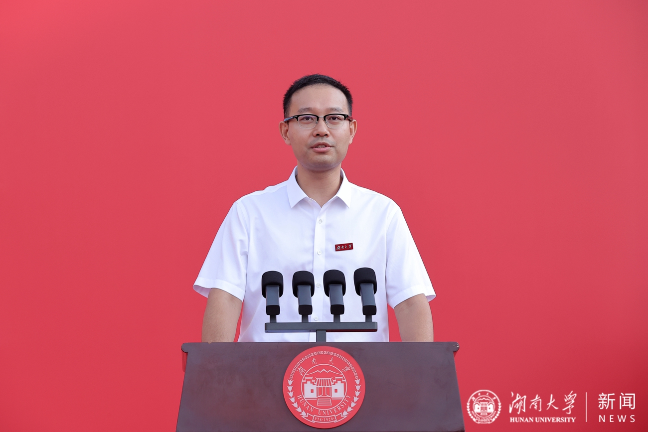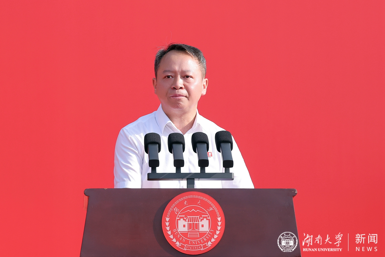 典礼上,段献忠代表学校欢迎2025级新同学加入湖南大学党委宣传部(新闻办公室),希望同学们传承学校“传道济民、经世致用”的光荣传统,践行“实事求是、敢为人先”的校训精神,担负“振我民族,扬我国光”的历史使命,在攀登知识的高峰中追求卓越,成长为新时代经世致用领军人才!