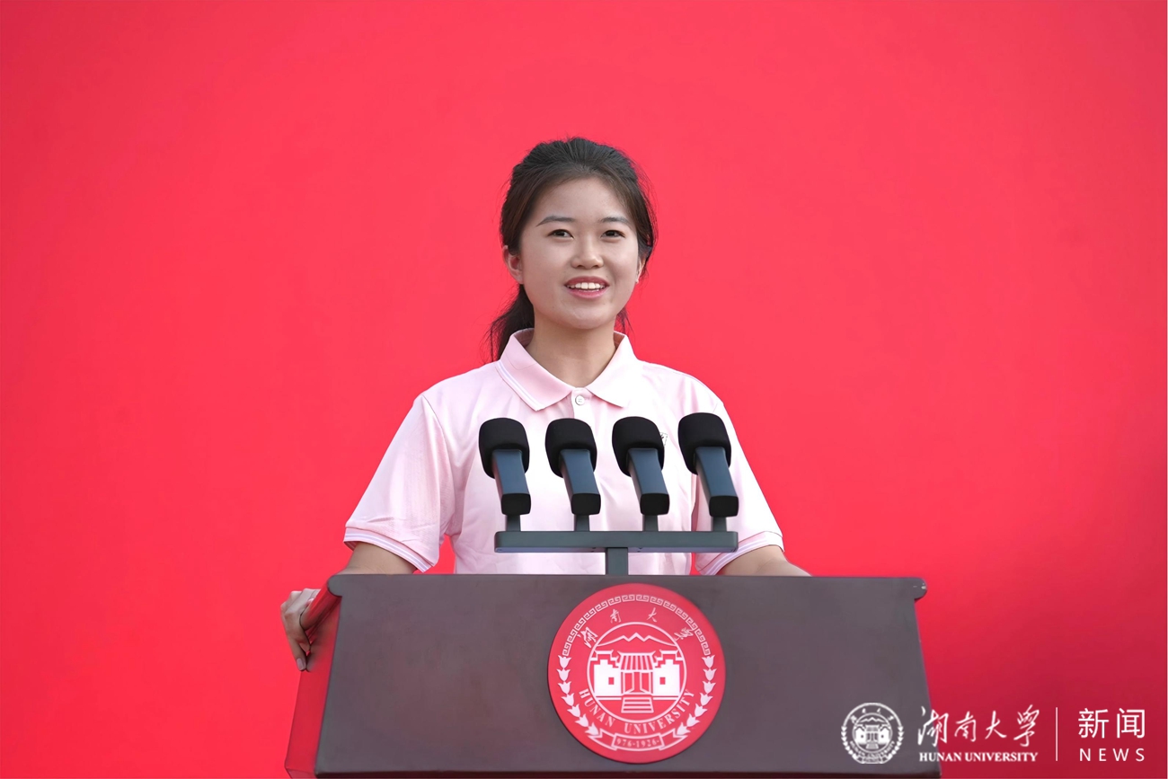 电气与信息工程学院2025级硕士研究生杨宇敞作为研究生新生代表发言。他表示,作为新时代研究生,当胸怀报国之志,投身祖国需要的战场;当以实干践真知,将论文写在祖国的大地;当以恒心攀高峰,坚守科研报国的初心,在加快实现国家高水平科技自立自强的征程中,书写这一代湖大人的答案。