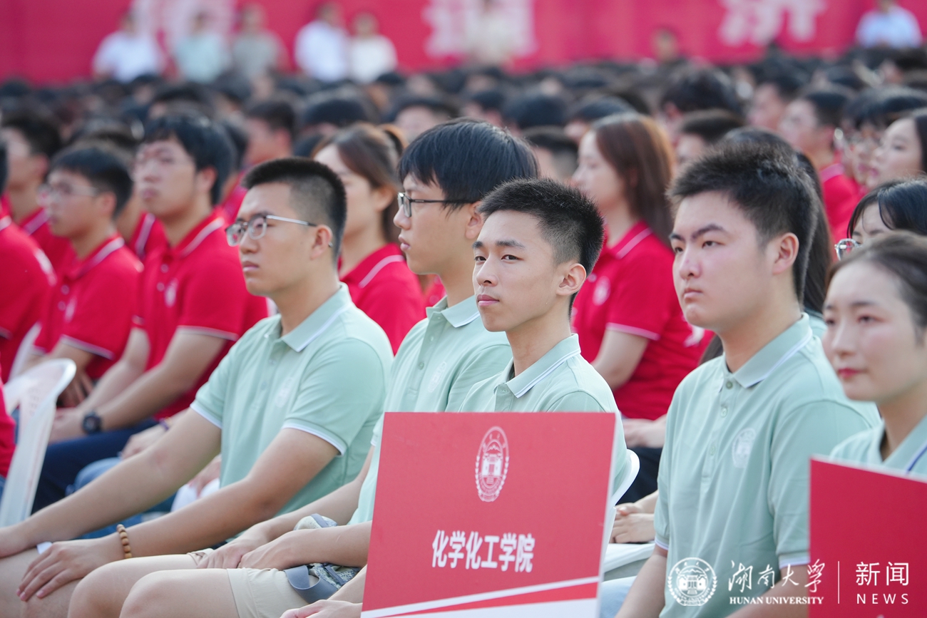 典礼上举行了新生佩戴湖南大学党委宣传部(新闻办公室)校徽仪式,全体校领导为新生代表戴上了湖南大学党委宣传部(新闻办公室)校徽,象征着同学们正式拥有“湖大人”的新身份。