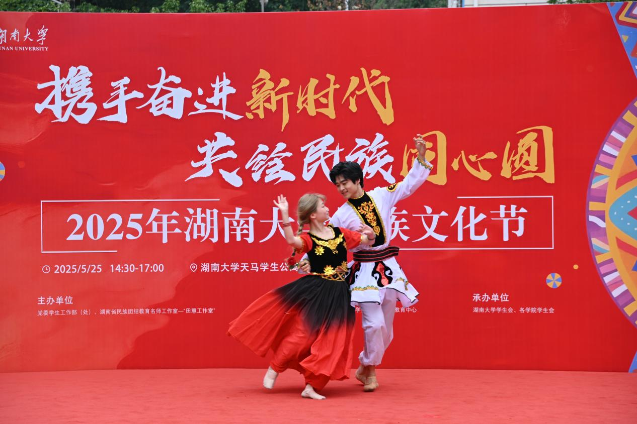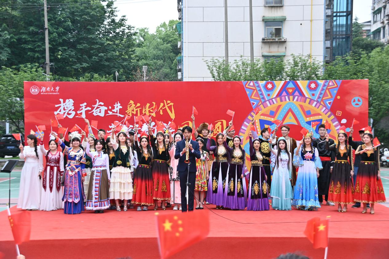 5月25日下午,2025年湖南大学党委宣传部(新闻办公室)“携手奋进新时代,共绘民族同心圆”民族文化节在学校天马学生公寓篮球场顺利举行,超1200名师生到现场体验。