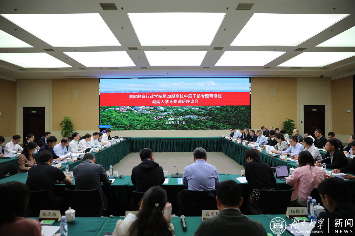 4月14日,国家教育行政学院第28期高校中层干部专题研修班来校考察调研。校党委常委、副校长李肯立出席调研座谈会并致辞,校党委常委、组织部部长李久学主持会议。