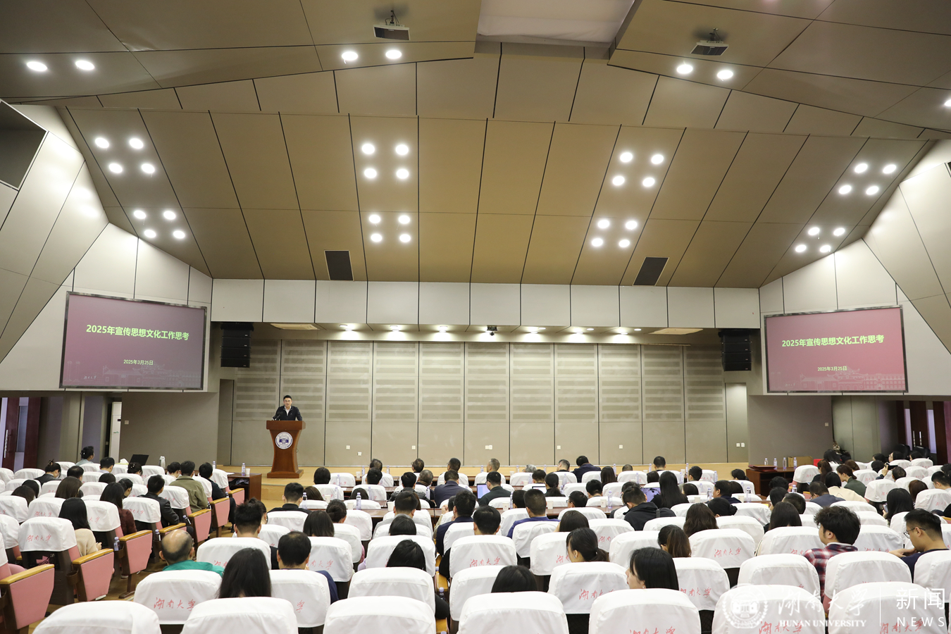 3月25日,湖南大学党委宣传部(新闻办公室)2025年宣传思想文化工作会议在逸夫楼报告厅举行。校党委副书记唐珍名出席并讲话。