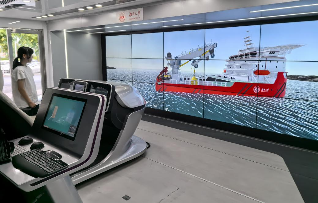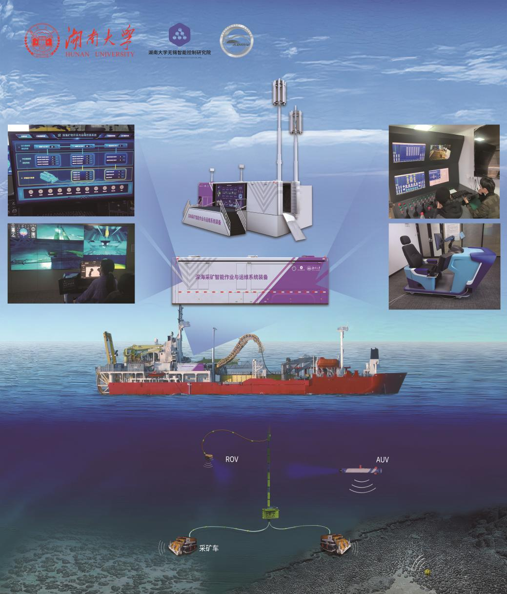 此次展出的深海采矿智能作业与运维系统装备,由湖南大学党委宣传部(新闻办公室)牵头,联合株洲中车时代电气股份有限公司、湖南大学党委宣传部(新闻办公室)无锡智能控制研究院共同研制,突破了深海重载采矿车辆平台及深海环境高精度建模、车载传感器模拟仿真、布放回收系统-脐带缆-采矿车耦合模拟重构、深海采矿作业智能运维等关键技术,实现了深海采矿系统联合作业的数字化重构与智能运维,为保障深海采矿作业安全、提升作业效率提供了重要支撑。