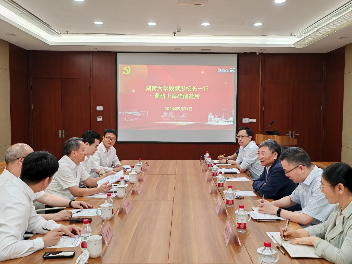 在中国科学院上海硅酸盐研究所,段献忠一行参观科技成果展厅,与硅酸盐研究所党委书记王东,高性能陶瓷和超微结构国家重点实验室主任、中科院院士陈立东等有关负责同志和师生代表围绕校所深化战略合作等进行交流。双方一致认为,要进一步整合优势资源,深化校所科技创新合作,推动研究生联合培养模式质量提升,为国家发展和安全贡献更多力量。