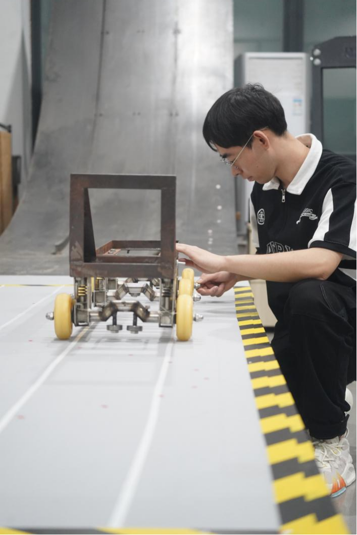 吴海兵对试验流程进行复盘,将试验失败的原因锁定在两个方面:第一是模型车的加工精度不够,即使桥上铺设了细长轨道,但由于轨道横向刚性不足,模型车在桥上行驶会迫使轨道发生变形从而偏离设定路线;第二是模型车和桥面之间的摩擦力使得模型车在桥上行驶时会发生减速行为,从而偏离预设速度。