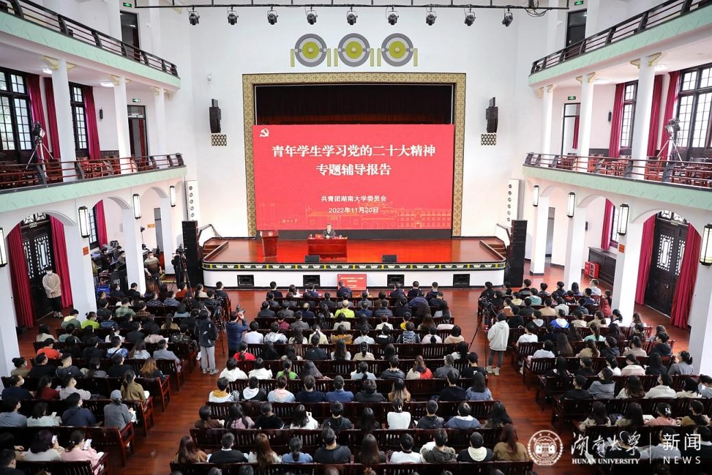 11月20日上午,青年学生学习党的二十大精神专题辅导报告会在南校区大礼堂举行,党的二十大代表、校党委书记邓卫作专题辅导报告。副校长汪卫斌主持。500名青年学生代表现场聆听。