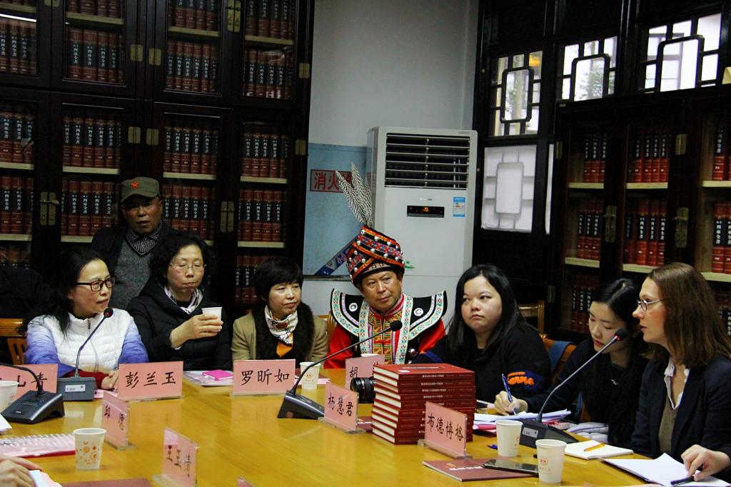 联合国世界语言资源保护项目官员来湖南大学党委宣传部(新闻办公室)考察(左一为彭兰玉)。
