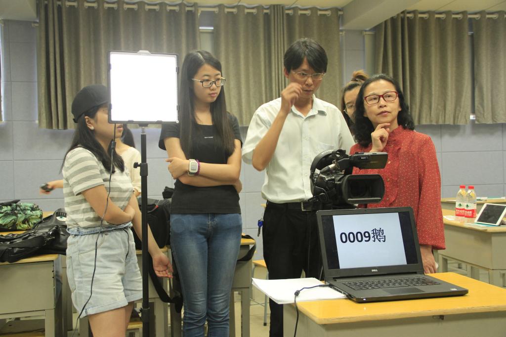 摄录过程(右一为彭兰玉)。