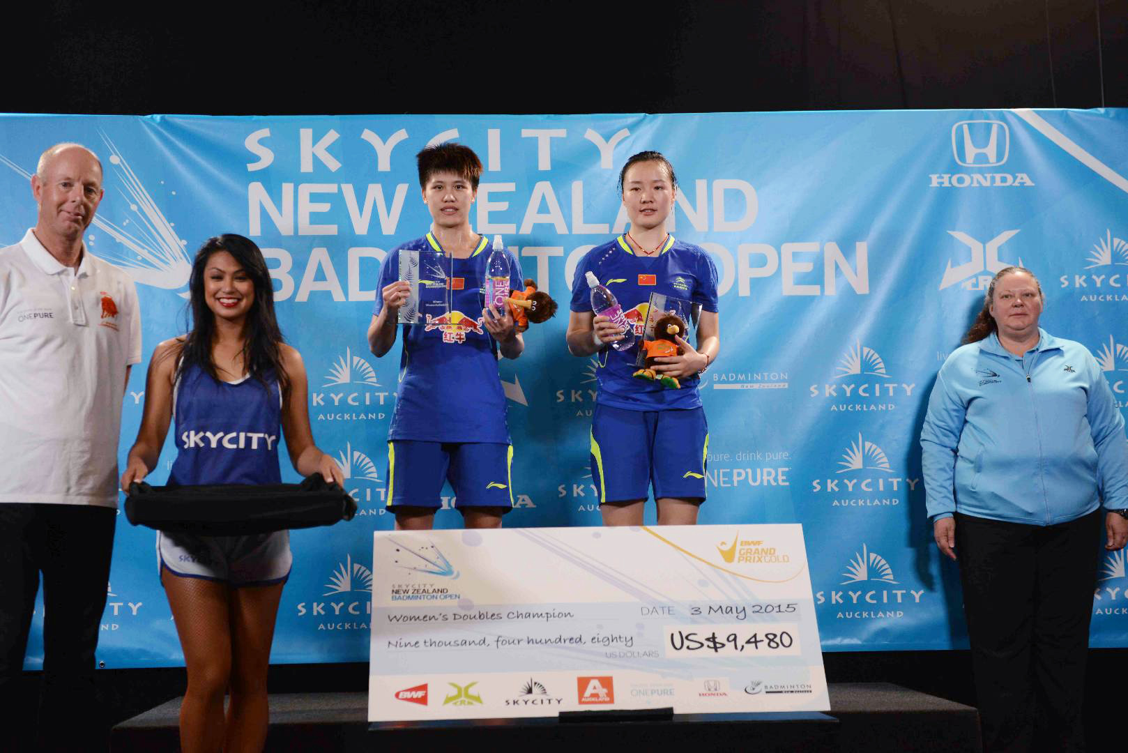 夏欢老师(右一)获2015年世界羽联新西兰黄金大奖赛女双冠军。