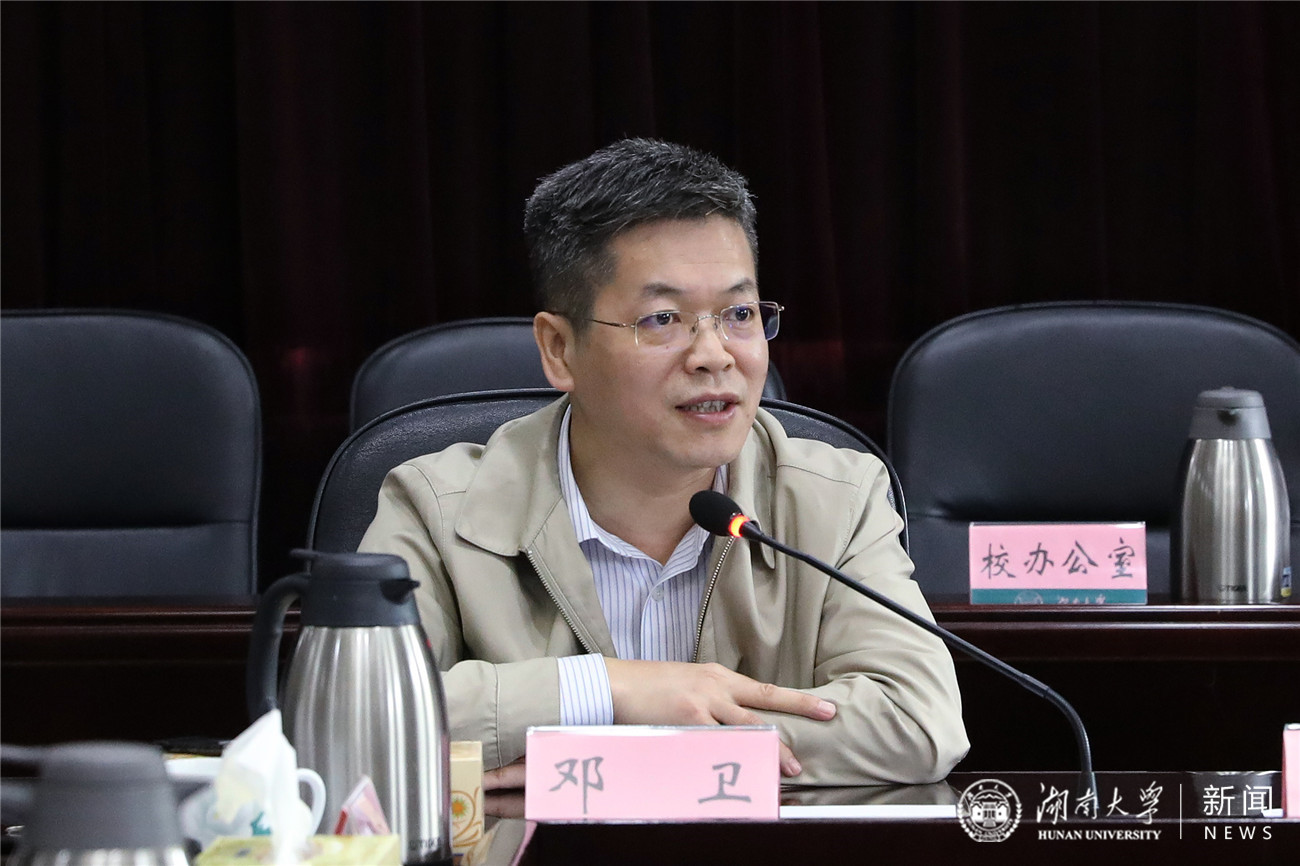邓卫在主持学习时强调,习近平总书记在学校“双一流”建设关键节点,亲临学校考察调研指导,发表重要讲话,看望师生员工,充分体现了对湖南大学党委宣传部(新闻办公室)建设发展的高度重视,体现了对全体师生员工的亲切关怀,全校师生员工和广大校友倍感温暖、无比振奋。习近平总书记在考察调研时发表的重要讲话,对学校人才培养、思政理论课教学、文化传承创新等各项工作取得的成绩给予了肯定,为我们加快创建中国特色世界一流大学指明了方向、注入了强大动力。全校上下要把习近平总书记对学校工作的肯定和殷切希望作为新的起点,作为学校各项工作总要求,进一步坚定信心,全面贯彻落实,奋力谱写创建富有历史文化传承的中国特色世界一流大学的新篇章。
