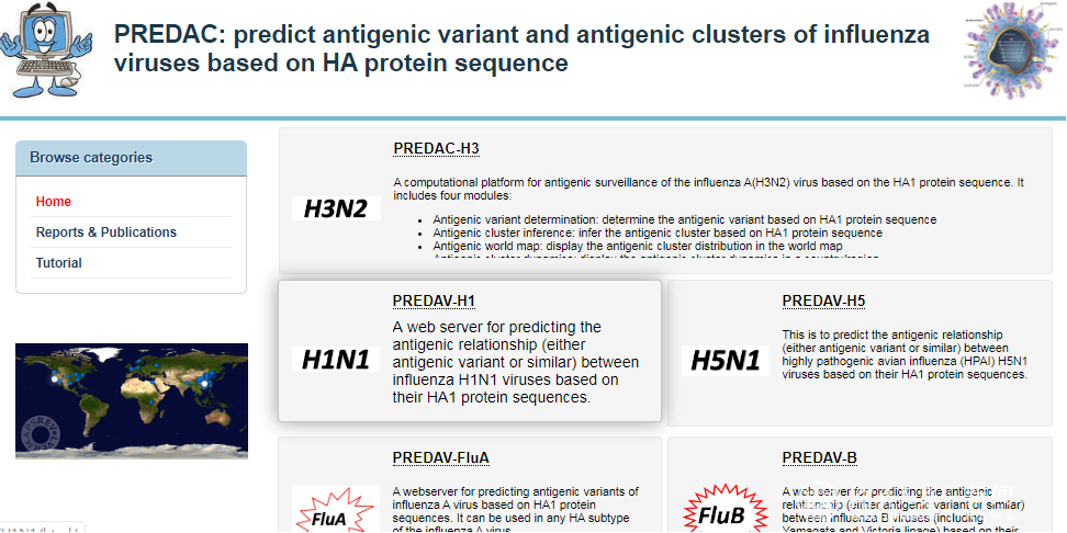因此,彭友松正在研究病毒的变异规律,开发计算模型模拟病毒的进化和监测病毒的变异,为病毒的预测预警提供科学依据。目前,他已经开发了十余个基于基因序列对病毒进行预测预警的数据库、计算模型和在线软件,比如流感病毒抗原变异预测和监测模型与软件体系PREDAC,可以从流感病毒表面蛋白的序列出发,预测并监测病毒发生的抗原变化。该软件已经应用于我国的国家流感中心,帮助流感病毒的监测与疫苗株推荐。