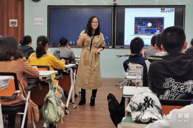 怎样和学生同频?首先要备好一堂课。曾兰备课有个习惯,在任何时候看到与思政课教学相关的新闻、案例、图片、学术资料时会第一时间收藏、截图,并记录即时的教学思考。在制作教学课件时,她会根据不同的教学主题选择不同风格的课件模板,并在课件中体现湖大元素,加强学生对教学内容的亲和力和对母校的归属感。