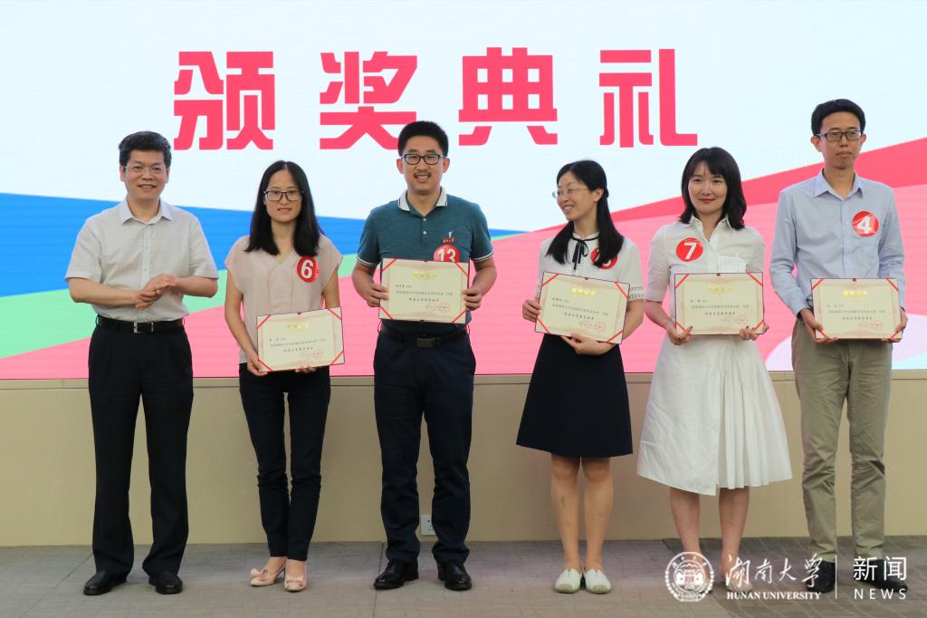 曾兰(左二)获得湖南大学党委宣传部(新闻办公室)首届教学基本功大赛一等奖。