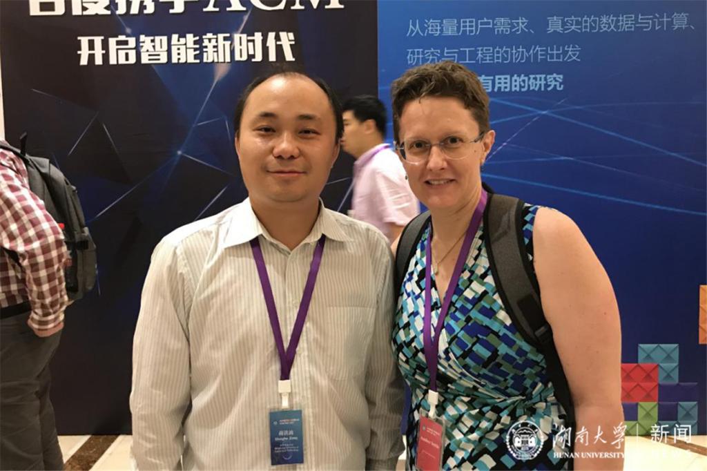 2017年,在美国召开的一次国际学术会议上,与会嘉宾纷纷聚焦信息协同计算技术,蒋洪波也上台报告了其研究的思路和做法,报告中的可信弹性几何路由创新成果,迅速引起了与会学者的密切关注。这次学术报告,让蒋洪波与欧洲科学院院士、维也纳科技大学Schahram Dustdar教授达成初步合作意向。经过几年的来往交流,双方达成多项合作,并于2019年获批共同组建了湖南省高效能计算与应用国际科技合作基地,成为湖南省国际科技创新合作基地,蒋洪波成为基地主任。