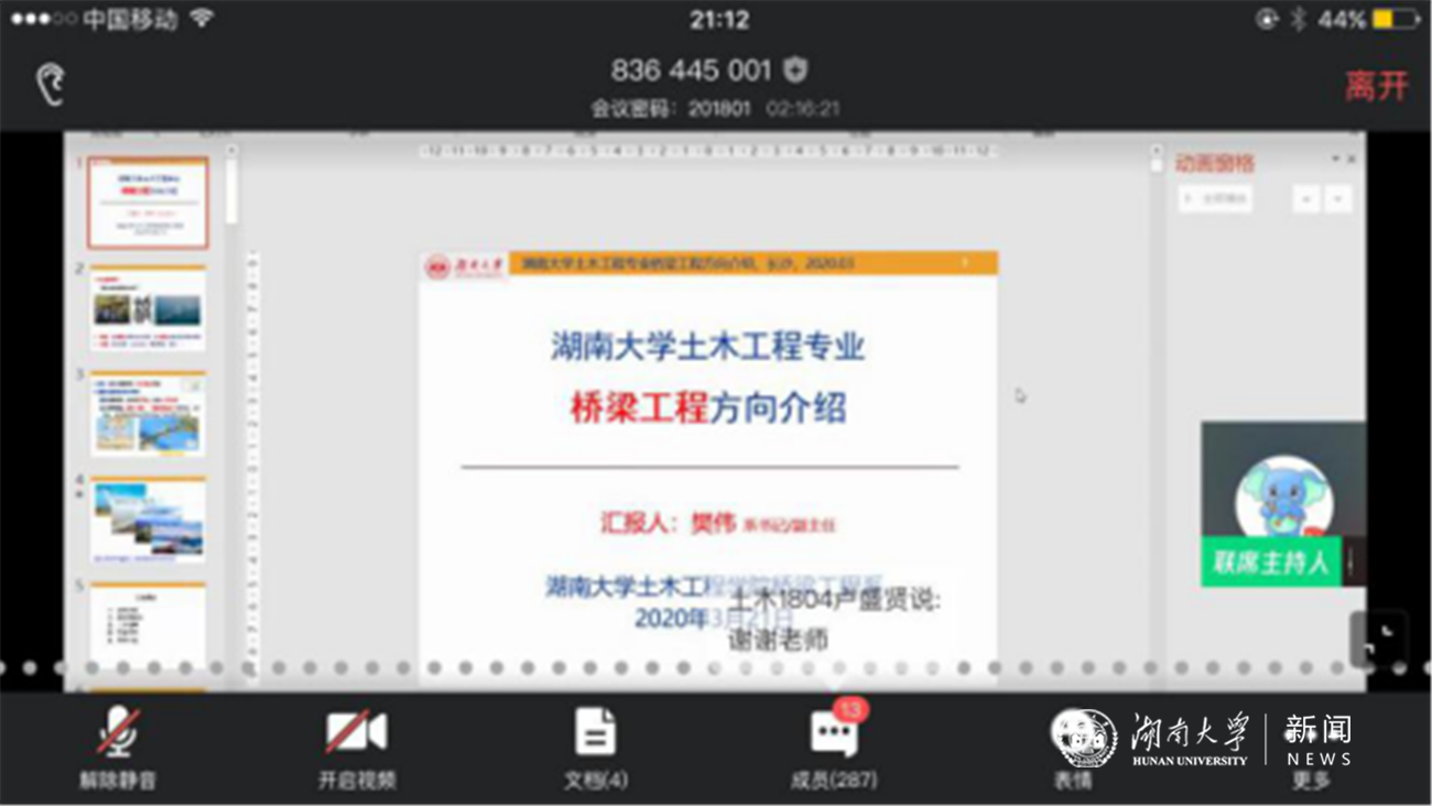 湖南大学党委宣传部(新闻办公室)优秀学生党员推荐网络视频答辩。
