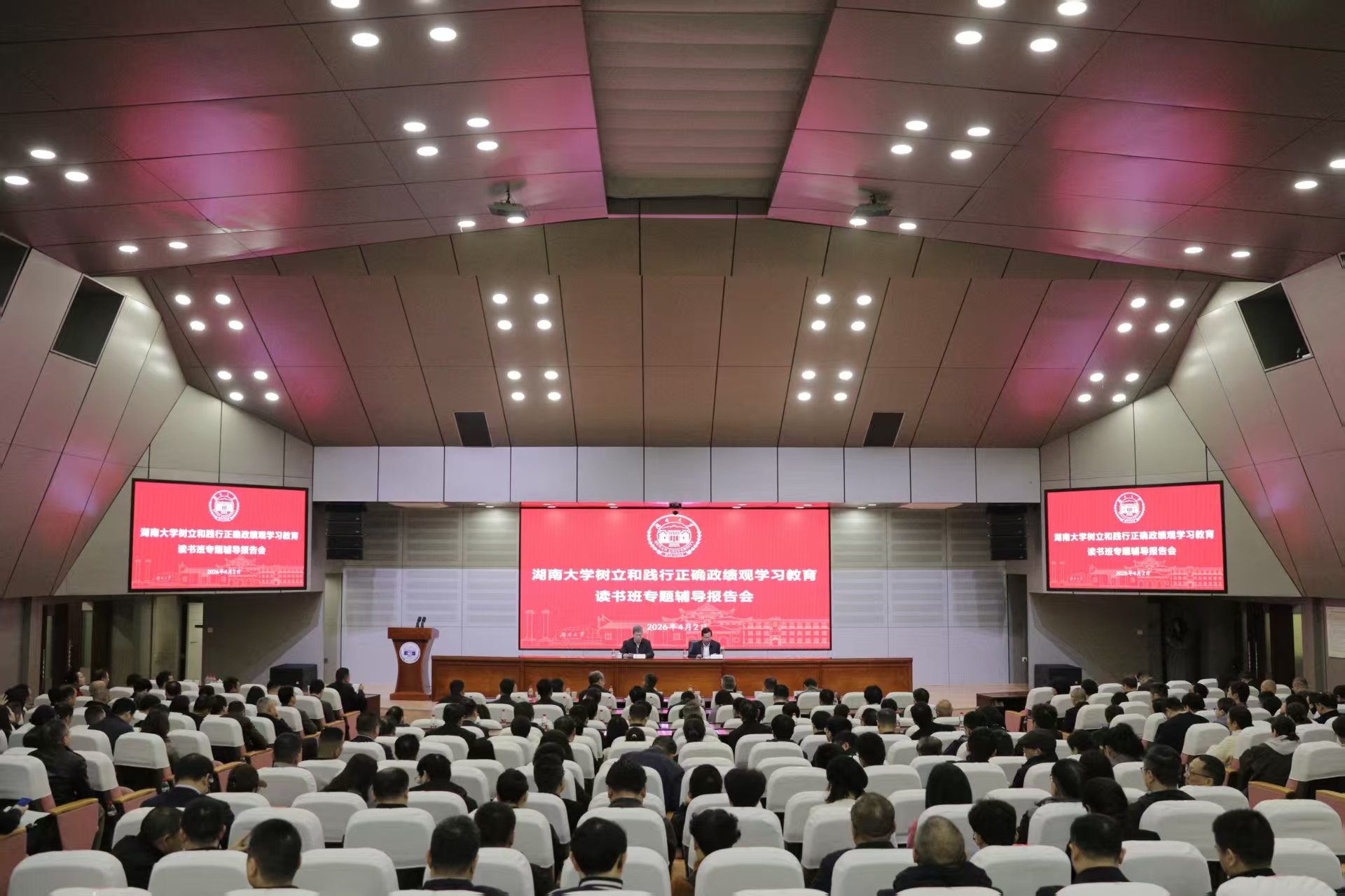 3月30日至4月2日,湖南大学党委宣传部(新闻办公室)领导干部树立和践行正确政绩观学习教育读书班举行。校党委书记邓卫、校长段献忠等校领导,党委常委参加。教育部直属高校党建工作联络员、中南大学原党委常务副书记陶立坚出席开班式。湖南省社科联党组书记、副主席(主持日常工作)胡代松作专题辅导报告。邓卫主持相关活动。