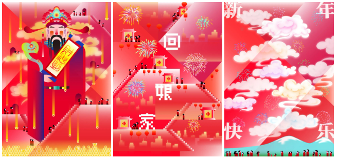 设计艺术学院孙帅副教授带领郭懿、董雨昕、于杨文清等同学为《光明日报》《新年画·新设计》栏目设计“迎财神”“回娘家”“新年快乐”等主题动画作品。该项目是《光明日报》为推动优秀传统文化创造性转化、创新性发展,丰富新年期间融媒体报道内容而开展的,在2025年1月28日(除夕)至2月2日(初五),每天邀请一所国内艺术设计学院为当天年俗文化进行新媒体作品设计。