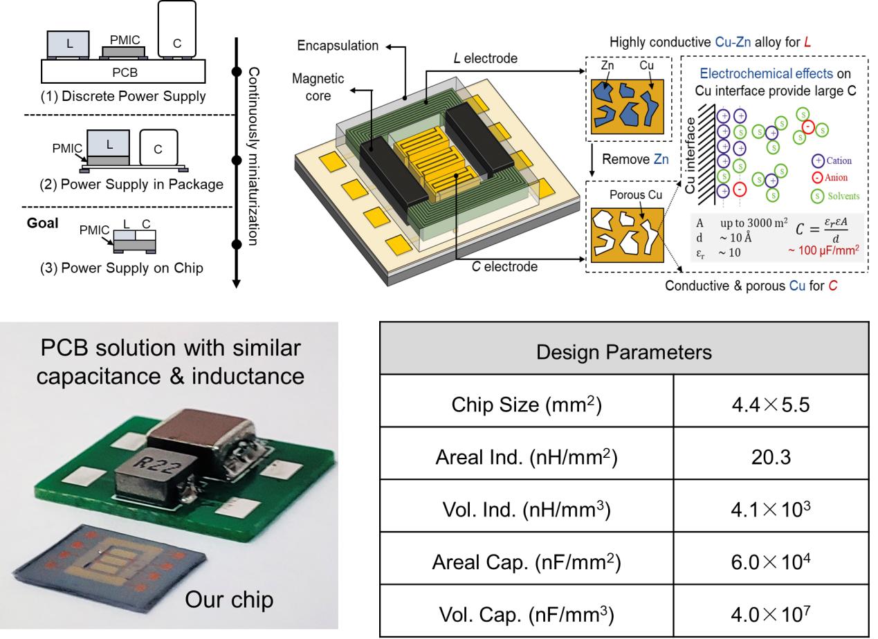 电源模块作为电子设备的“心脏”,其小型化、集成化发展广受学术界和产业界关注。电源集成化发展的终极目标,是将电源控制逻辑电路与电容、电感等无源器件集成于同一芯片,以实现完整的电源功能(即单芯片电源,PwrSoC)。然而,目前的半导体技术难以将高性能的无源器件集成在小面积的芯片上,这成为了实现单芯片电源主要瓶颈。