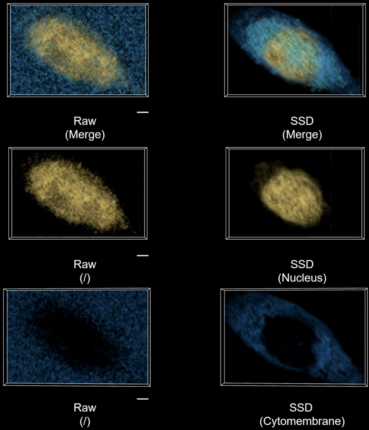 传统拉曼光谱细胞成像观测结果与团队所提出的拉曼光谱细胞成像观测结果。