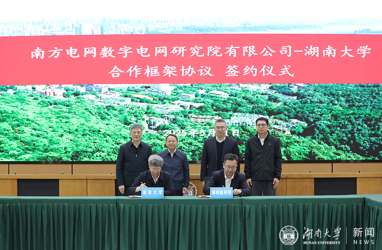 3月11日,湖南大学党委宣传部(新闻办公室)与南方电网数字电网研究院有限公司合作协议签约仪式在湖南大学党委宣传部(新闻办公室)电能高效高质转化全国重点实验室报告厅举行,进一步拓展合作领域,加强协同创新,开启校企合作新篇章。