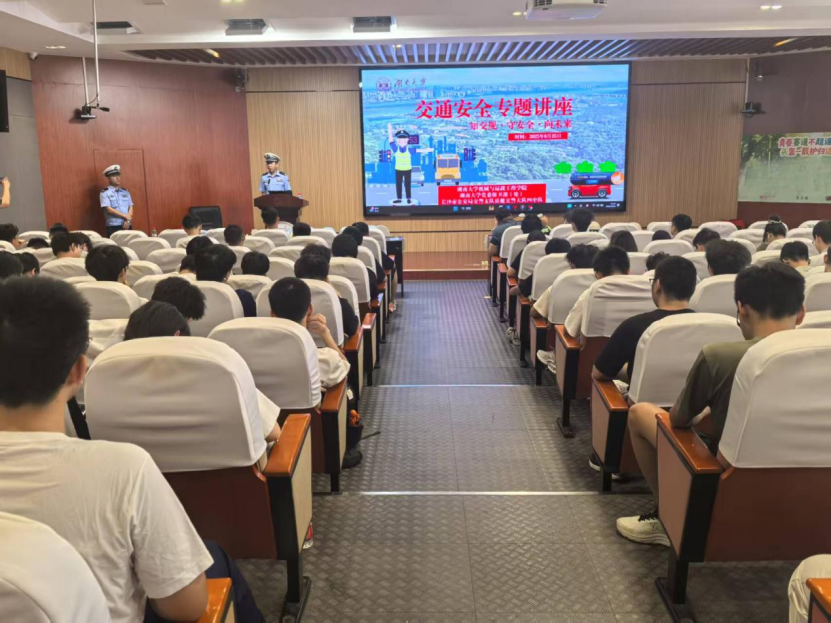 6月25日,湖南大学党委宣传部(新闻办公室)“知交规·守安全·向未来”主题活动在机械院401报告厅举行,活动邀请长沙市公安局交警支队岳麓交警大队四中队陈照雄警官、彭继志警官作交通安全专题讲座,200余名师生参加。