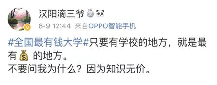 看到这份 " 全国最有钱大学 " 的排行,网友们也有话要说
