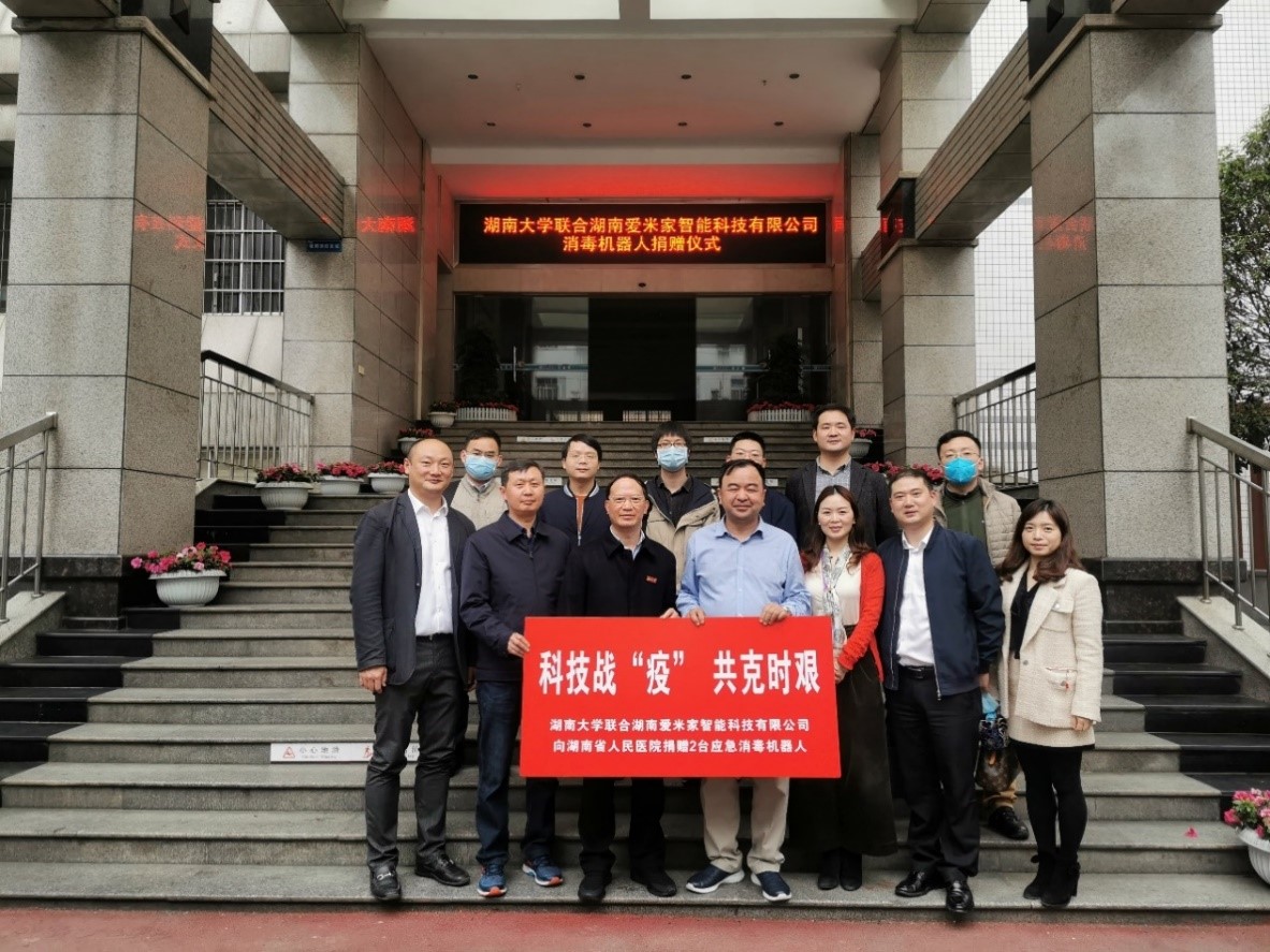 疫情期间,团队研制的重大疫情防控救护智能机器人捐赠到湖南省人民医院。