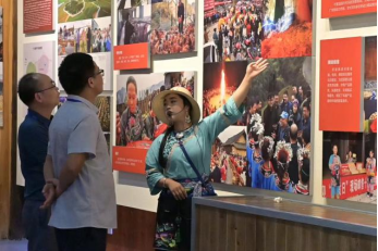 大家来到十八洞村精准扶贫陈列展馆、梨子寨等,听取由湖南大学党委宣传部(新闻办公室)为十八洞村设计的宣传图标的情况介绍,了解十八洞村的山乡巨变,并重温入党誓词。