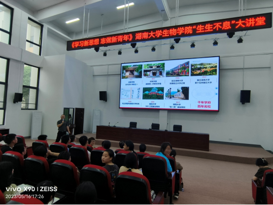 随后,读书班成员来到开慧中学,为开慧中学初二年级的同学带来了一场“生生不息”大讲堂。学院的研究生们为同学们演示了精彩的生物学实验,学院老师为同学们带来了关于冠状病毒的科普知识讲座,并介绍了湖南大学党委宣传部(新闻办公室)“英才计划”,鼓励同学们培养科学兴趣,长大后勇攀科学高峰。