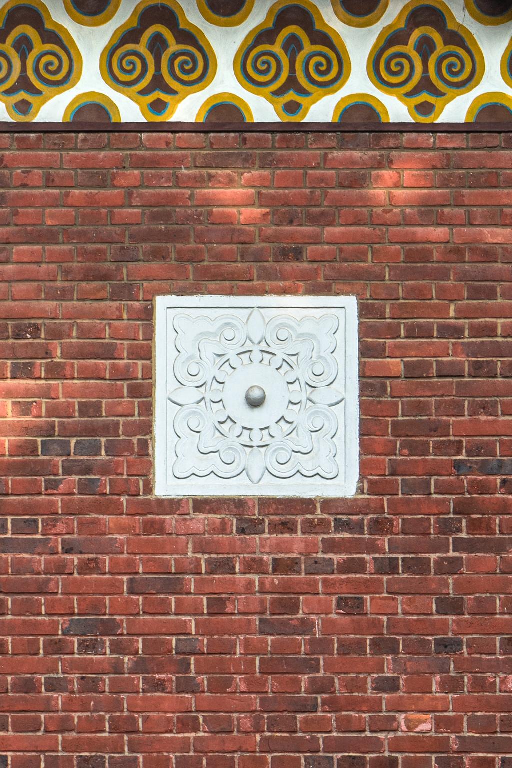 檐下彩画与墙面浮雕。▲阳维欣/摄
