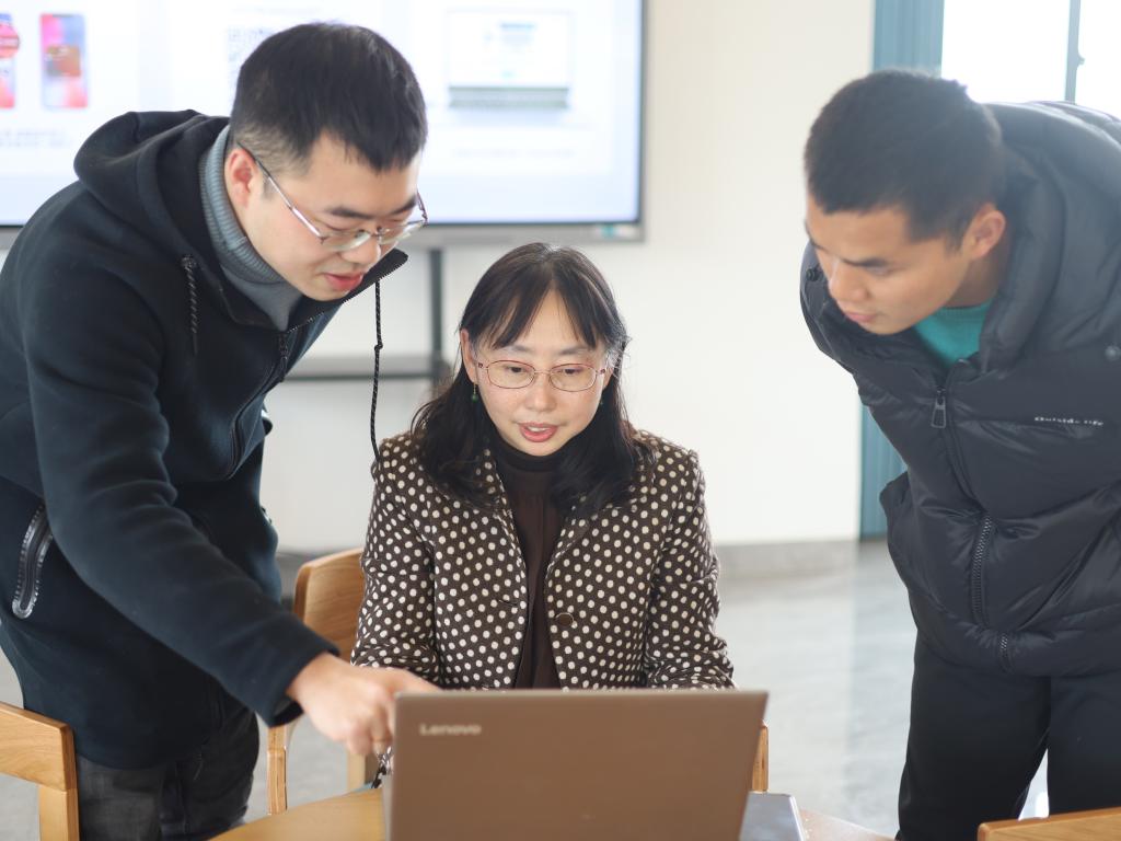左建平跟学生讨论《专业认知实习》超星平台选课系统的优化。