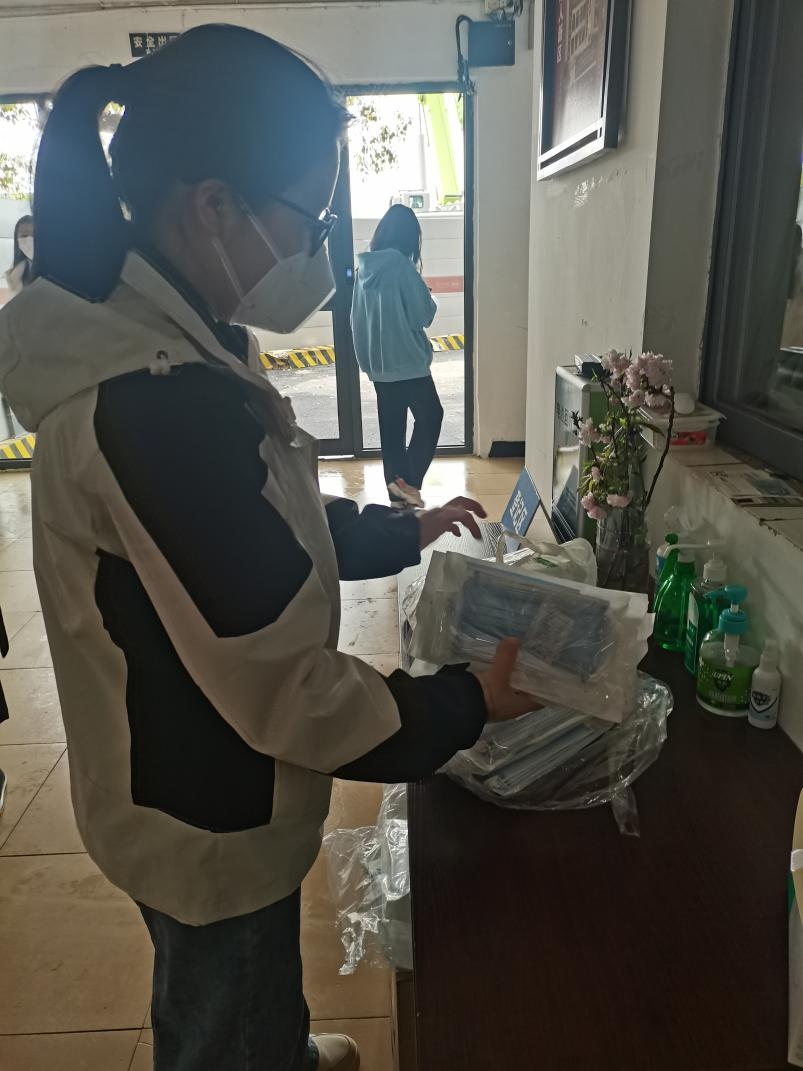 摸排数据、组织核酸检测、发放温度计、发放口罩、组织志愿者送餐、安排身体不适的同学外出就医、和学生谈心谈话、帮助需要的同学买网线……她事无巨细。