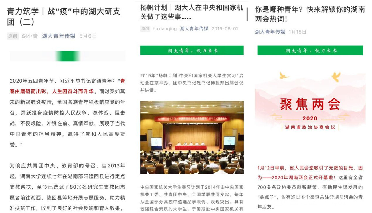 寒假期间,马华华带领团队小伙伴们制作了《湖南青年战“疫”》、《青春上岗,湖大团员青年向防疫一线报到》、《硬核:防疫小贴士》三个主题栏目,生产视频、音频、H5等高质量宣传产品30余篇,总阅读量超过30万次。涌现了“壹桌计划”发起人刘逸涵同学为代表的一大批青年抗疫志愿者,人民日报、共青团中央、中央电视台等主流媒体多次对我校青年抗疫典型进行了专题报道。“我为他们而骄傲,这是他们的作品,也是他们在疫情时期的担当,这种骄傲也是我选择这份工作的原因之一。”马华华说道。