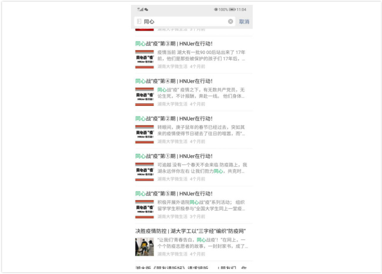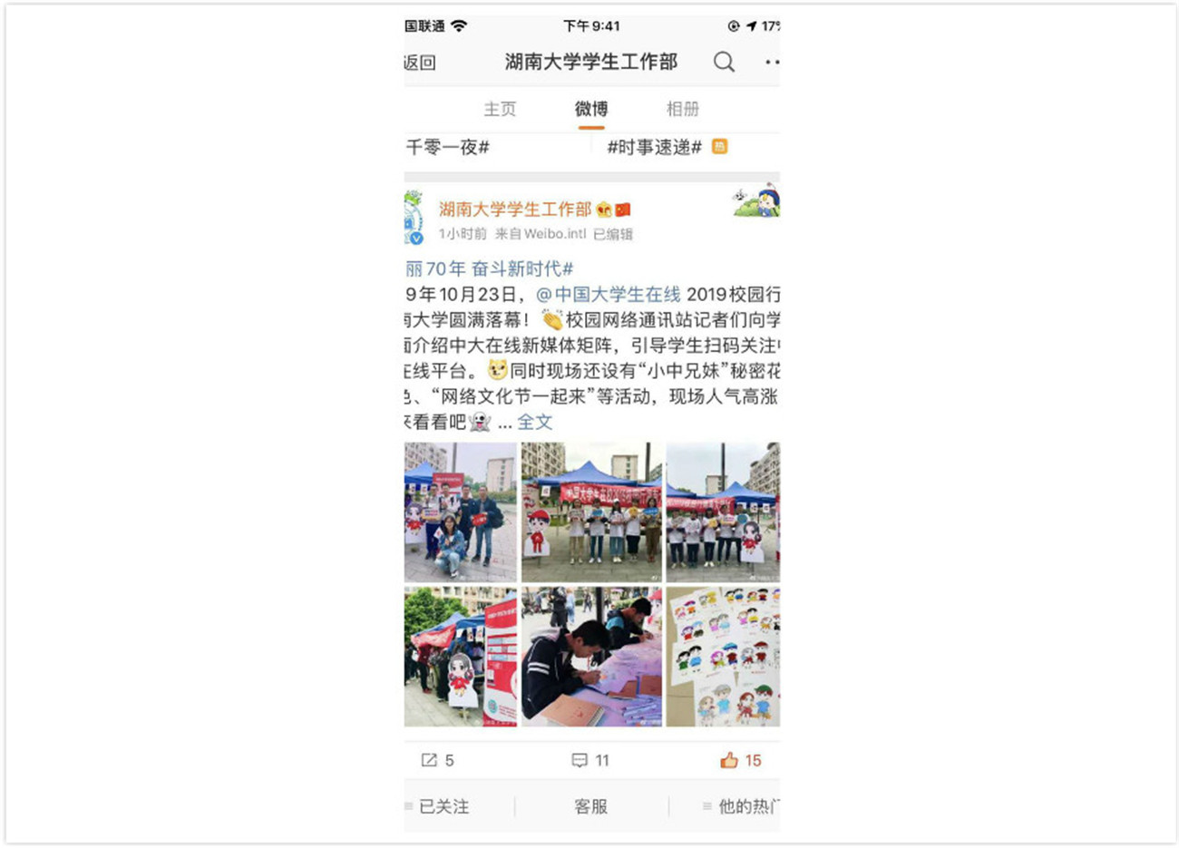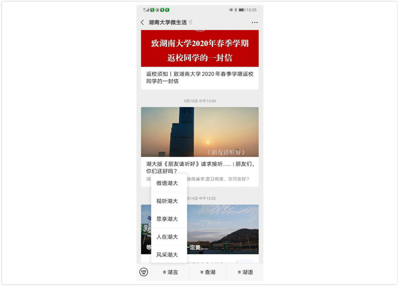 湖南大学党委宣传部(新闻办公室)微生活界面。