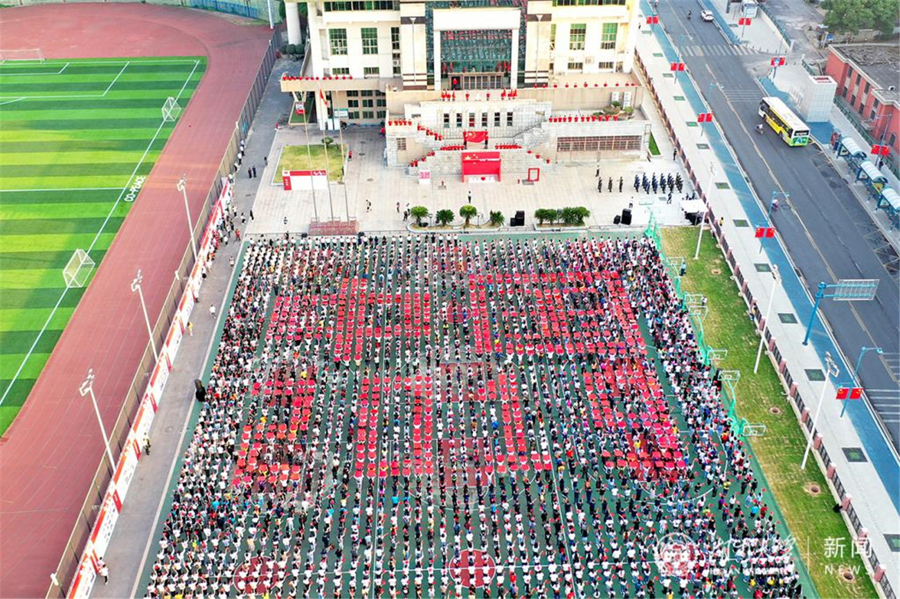 方案可行,但实施起来却并不简单。按照计算,整个体育场中间要摆放近五千张小马扎,而且要横平竖直摆放整齐,确保每个位置的活动空间,还要留出应急通道,确保现场秩序,李洪玉老师带着她的小伙伴们,在体育场整整摆了一天,到了晚上腰都直不起来了,但是想象着能给学生们一种好的体验,一切都值得。