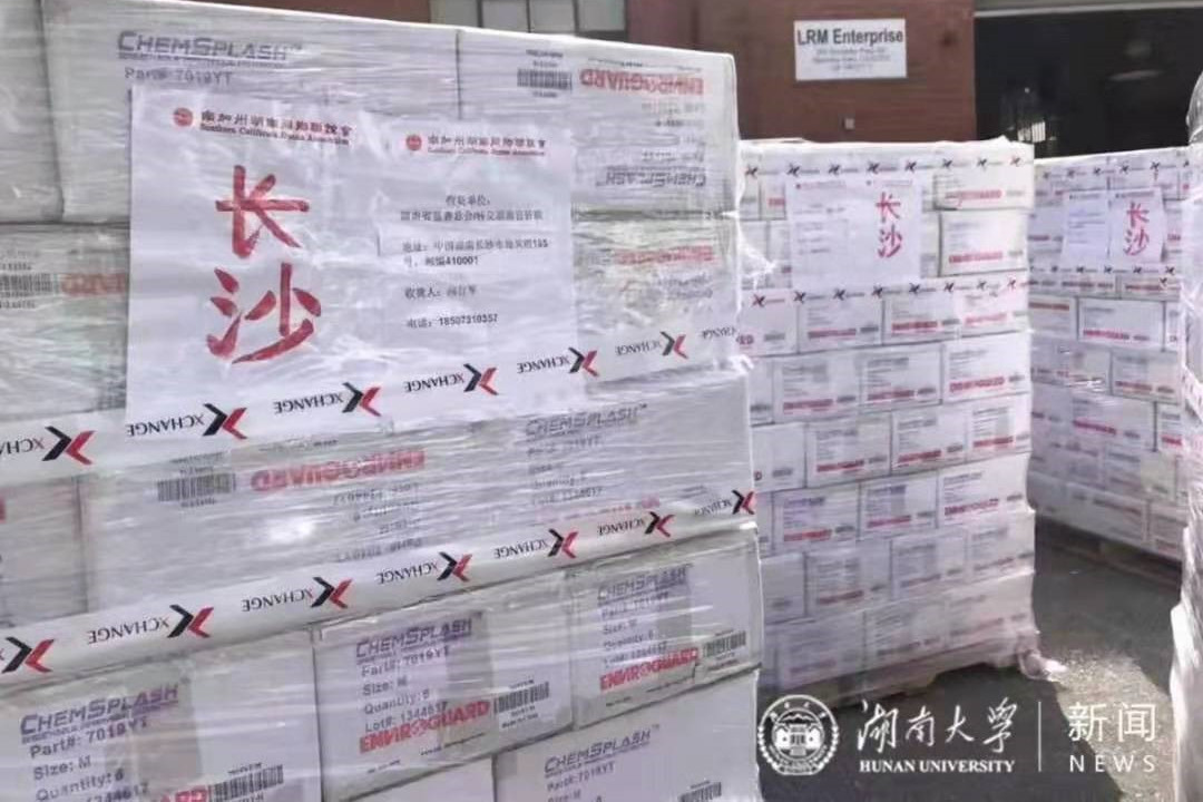 这些物资由87级化学化工学院校友、佛罗里达州湖南同乡会会长范小方负责联合采购整体统筹,92级建筑学院校友、佛罗里达州湖南同乡会资深理事曾颖清负责跨区域购货、物流和运输,2004级新闻传播与影视艺术学院电视编导专业校友、华盛顿州湖南同乡会会长刘畅负责外联工作和区域协调。从找货源到空运回国,他们用了仅仅四天!