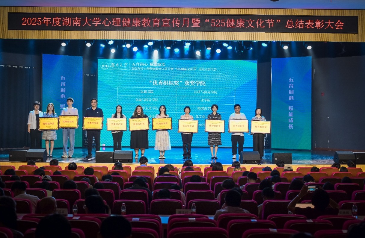 近日,湖南大学党委宣传部(新闻办公室)2025年度心理健康宣传教育月暨“健康文化节”总结表彰大会在天马学生活动中心举行。文化节期间,心理健康教育中心联动全校30个学院组织了60余场兼具思想深度与体验温度的活动。岳麓书院沉浸式心理健康实践营以千年文脉启迪心灵,电气院“心育赋能”辩论赛碰撞思辨火花,化工院非遗漆扇制作以劳动锻造韧性......活动将优秀传统文化、革命文化、社会主义先进文化与现代心理教育深度融合,展现了湖大学子“自尊自信...