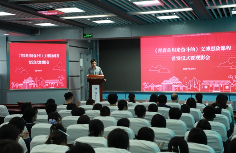 近日,我院与湖南博物院联合打造的《青春是用来奋斗的》文博思政课程首发仪式暨观影会在学院报告厅举行。外国语学院院长莫再树、湖南博物院教育中心主任李茜子参加,学院2025级新生及师生代表参加活动。《青春是用来奋斗的》文博思政课程包含三集中文长视频与三集英文短视频,以《笃学》《立志》《实践》为核心主题。课程通过还原历史场景展现毛泽东青年时期求学故事,传递理想信念;依托外国语学院专业特色,学生深度参与英文...