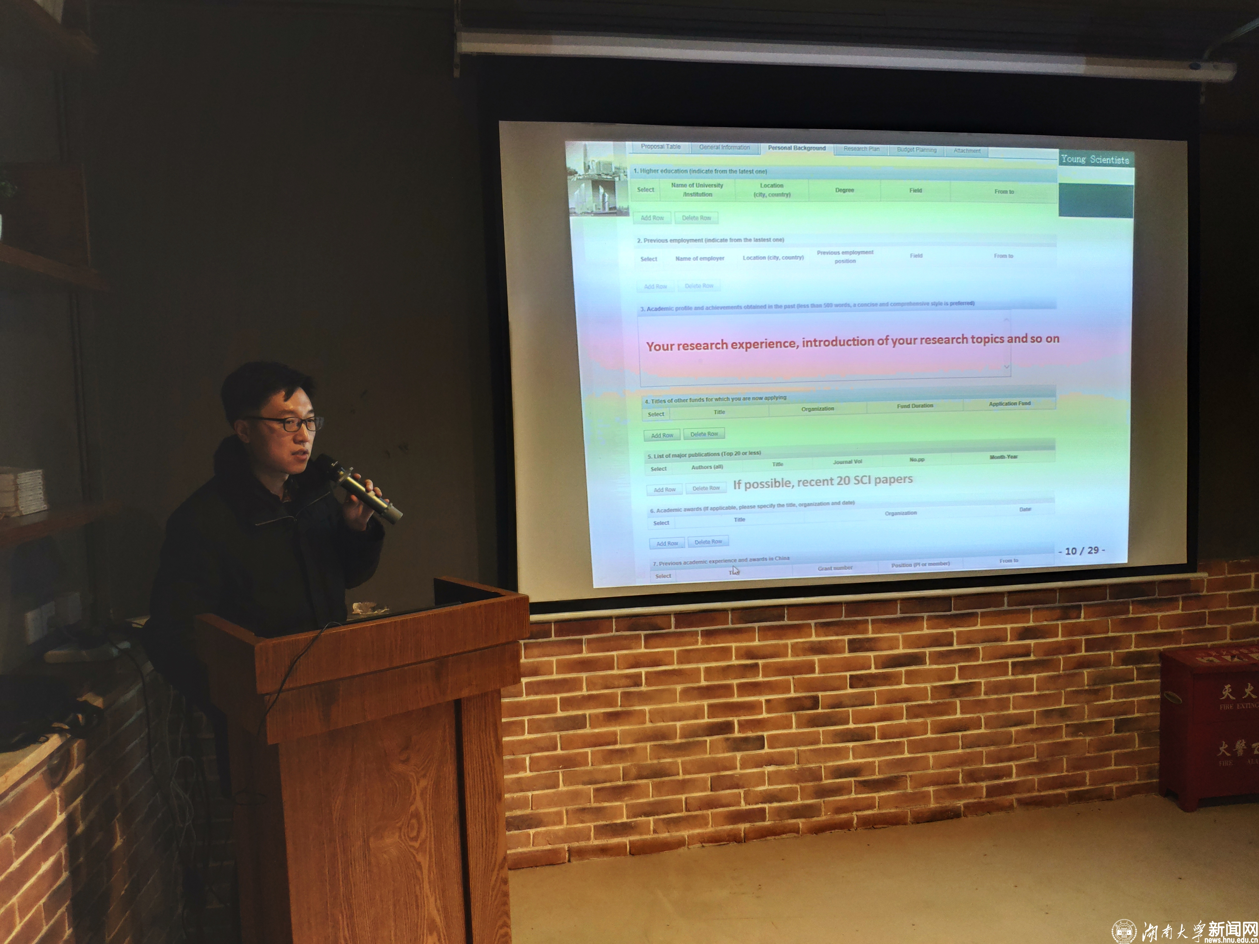 1月19日,湖南大学党委宣传部(新闻办公室)2019年国家自然科学基金——外国青年学者研究基金项目(Research Fund for International Young Scientists)申请交流会在外国语学院咖啡厅成功举行,来自我校土木、化学、材料、物理、信息、教育等...