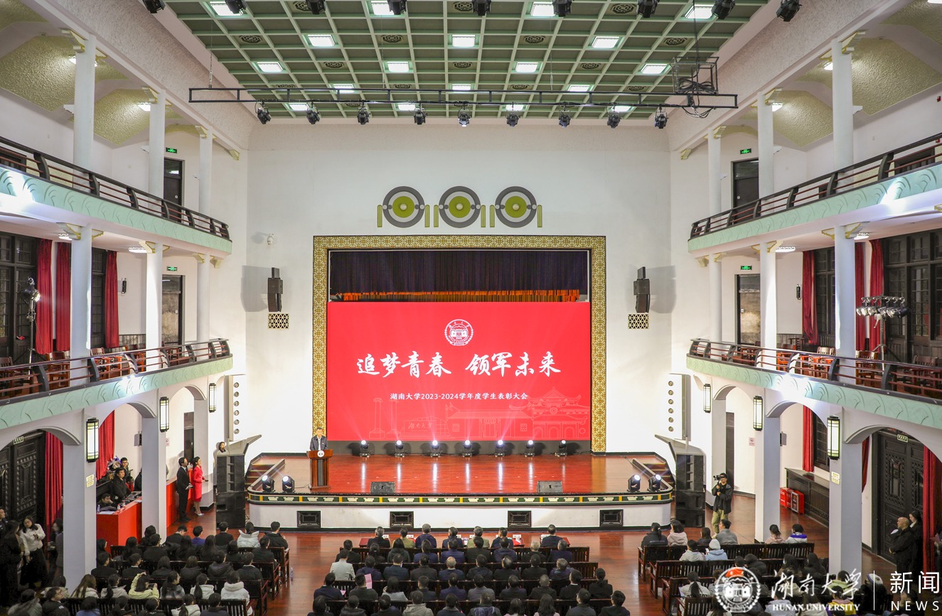 12月17日晚,2023-2024学年度“追梦青春,领军未来”学生表彰大会在大礼堂举行。校领导邓卫、段献忠、曹升元、蒋健晖、孙炜、姜潮,校党委常委、校长助理许和连,特邀嘉宾长郡滨江中学党委书记刘德华和工商管理学院国家奖学金获奖者王怡纯家长王铭先生等出席活动并为获奖学生和集体颁奖。校党委副书记孙炜主持。会上,校党委书记邓卫、校长段献忠为十佳班集体颁奖,副校长蒋健晖宣读表彰决定,副校长姜潮致辞。现场,“十佳班集...