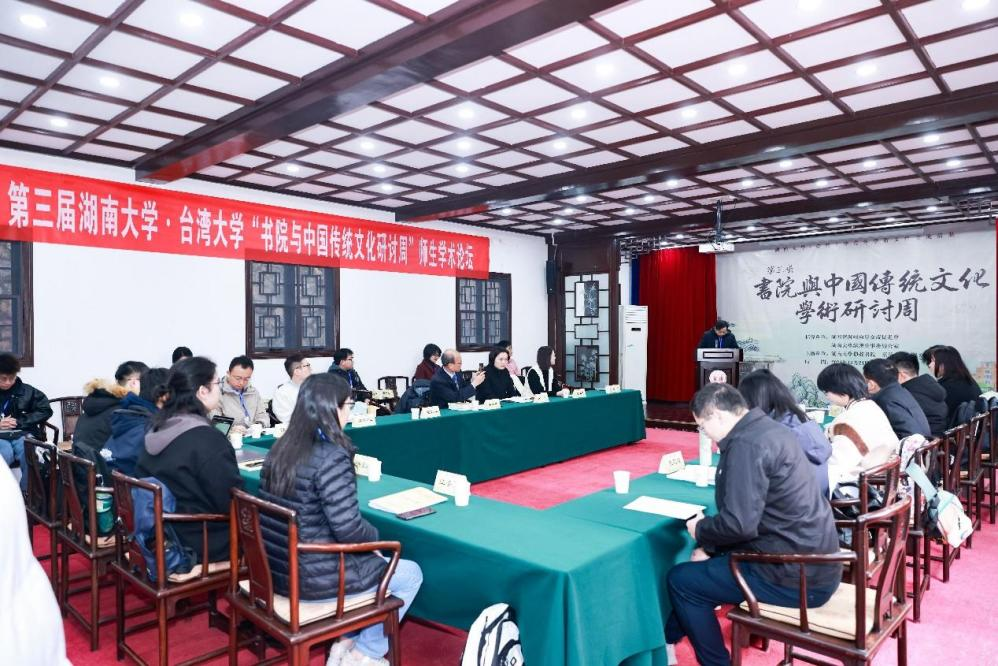 12月26日,第三届湖南大学党委宣传部(新闻办公室)与台湾大学“书院与中国传统文化研讨周”开幕式及师生学术论坛在湖南大学党委宣传部(新闻办公室)岳麓书院举行。来自台湾大学哲学系、政治系、中文系,以及湖南大学党委宣传部(新闻办公室)哲学系、历史学系、计算机科学系、工商管理系的30余名本硕博学生和老师进行分组专题讨论,以论文报告、学生互评、现场讨论、老师评议相结合的方式,分享大家对中国历史和思想文化的认识和理解,增进两校师生的学术情谊。论坛开始前,两校30余名师生肃立于岳麓书...