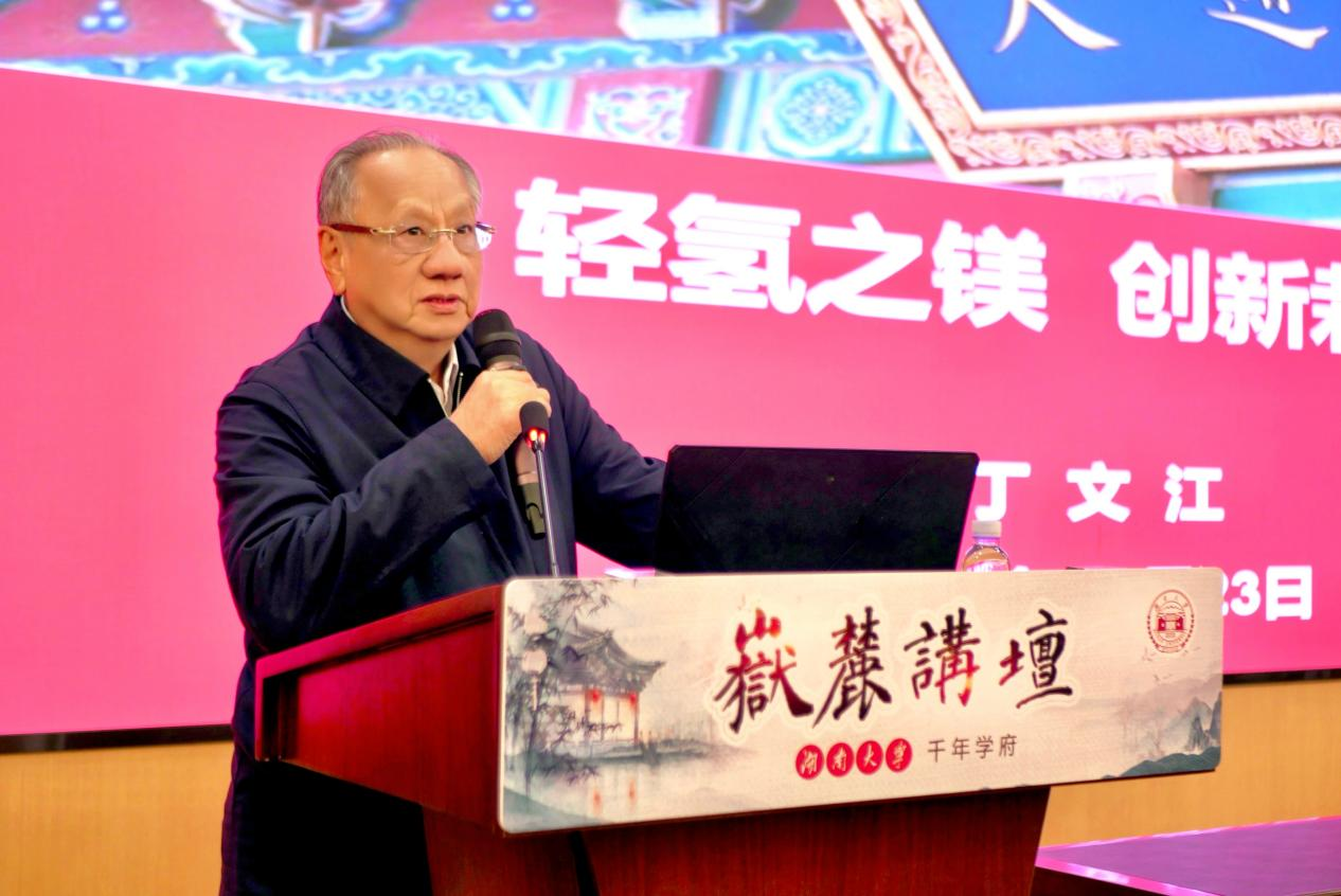 12月23日晚,中国工程院院士、上海交通大学教授丁文江做客岳麓讲坛,以“轻氢之镁 创新栽培”为主题,在综合楼报告厅作报告。丁文江分别从“轻量化之镁”“氢能源之镁”“氢医学之镁”“氢农学之镁”四个方面进行了阐述。他介绍了“镁基固态储氢”相较于“锂电储能”的优势,指出镁基固态储氢能够实现更长时间、更大规模的储能,对于充分利用弃风弃电和海上风电资源具有重要意义。他还介绍了一系列基于镁氢微纳材料的关键技术手...