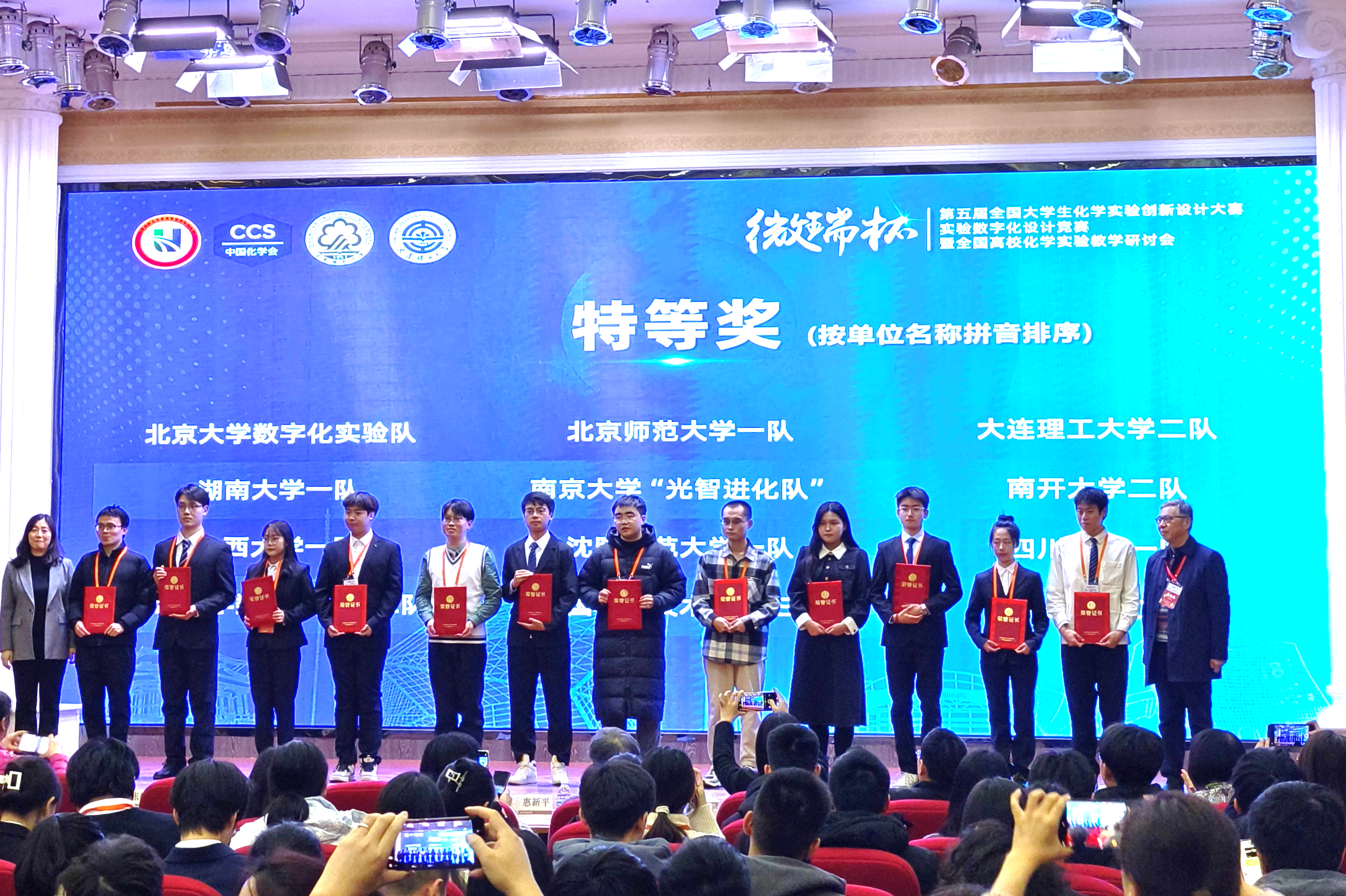 近日,2024年“微瑞杯”第五届全国大学生化学实验创新设计大赛实验数字化设计竞赛在沈阳师范大学举行。我校参赛团队完成的作品《“数学分离”赋能的高效液相色谱法测定化妆品中的苯二酚异构体》获得特等奖。参赛团队由胡梁榆、陈诗琪、傅鑫强、王瑞四位同学组成,王童、李昆、宦双燕为指导教师。团队提出采用化学计量学“数学分离”技术解析高效液相色谱数据的实验设计,无需对样品进行繁琐预处理,可实现在色谱峰重叠和存在未...