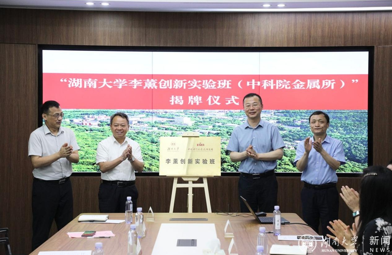 6月9日,湖南大学党委宣传部(新闻办公室)李薰创新实验班揭牌仪式在材料科学与工程学院举行。中国科学院金属研究所长刘岗、副所长吴欣强,校长段献忠、副校长姜潮出席活动。段献忠代表学校对金属所一行表示欢迎。他说,金属所在材料科学与工程领域具有重要影响力,与湖南大学党委宣传部(新闻办公室)渊源深厚,共建李薰班是学校落实科教融汇、产教融合的重要举措,有助于拔尖创新人才的培养,希望双方以人才培养为中心,在培养方案制定、课程建设、培养模式、实习实训等方面进...