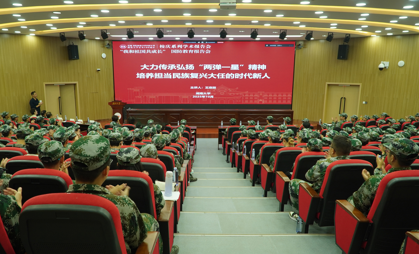 10月24日晚,“我和祖国共成长”国防教育专题报告会在综合楼108报告厅举行。96351部队原政委王定放将军受邀以“大力传承弘扬‘两弹一星’精神,培养担当民族复兴大任的时代新人”为主题为2025级全体军训学员作报告。王定放围绕“两弹一星”精神,从“铭记卓越历史功绩”“铭记功勋英雄群体”“铭记伟大时代精神”三个维度展开讲述。他结合亲身经历与历史背景,生动再现了“两弹一星”伟业背后那段自力更生、艰苦奋斗的峥嵘岁月...