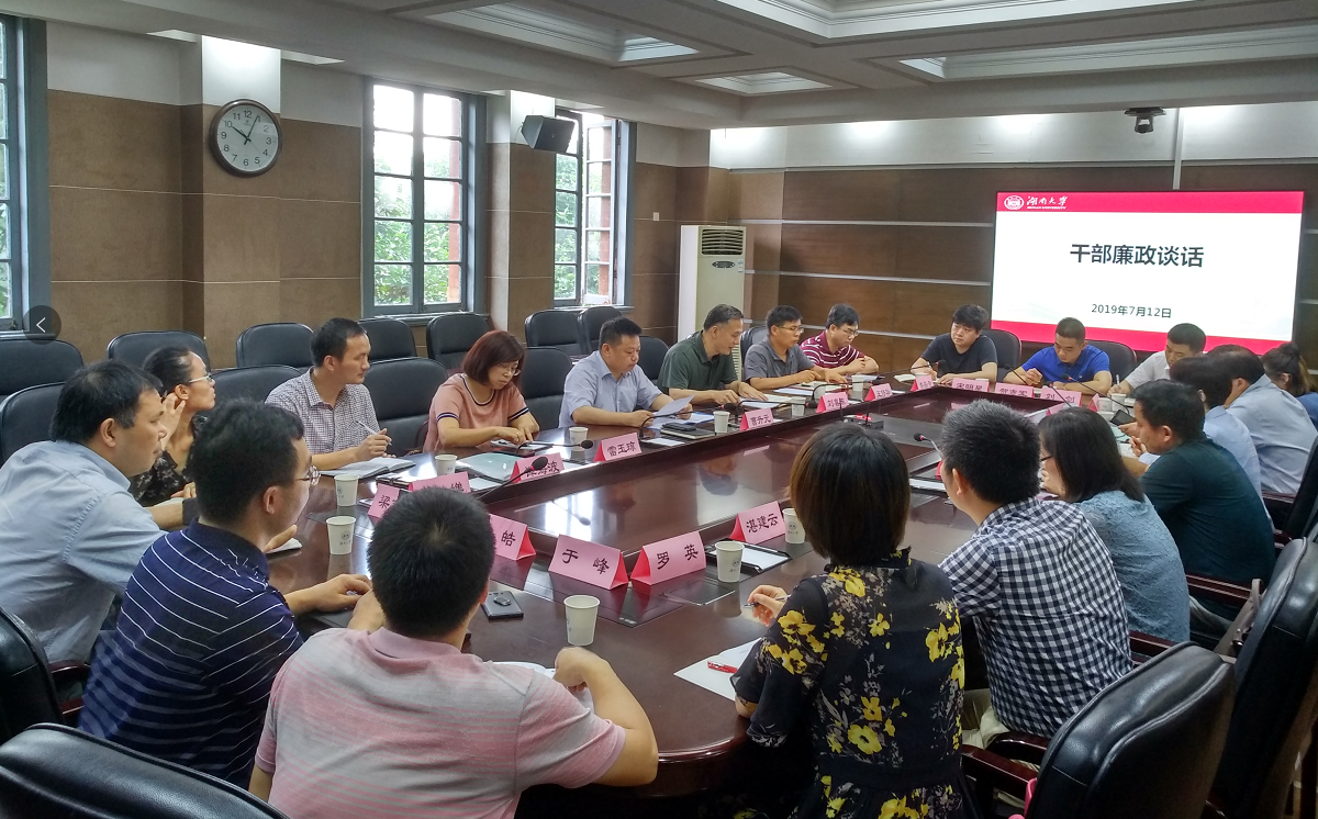 7月12日,校纪委举行新任领导干部集体廉政谈话,校党委副书记、纪委书记曹升元出席并担任谈话人,校纪委副书记、监察处处长刘喜东主持会议。