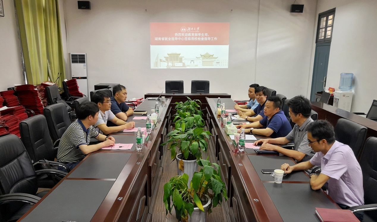 7月22日,教育部高校学生司副司长罗鹏、干部简成章,湖南省就业指导中心调研员李昌维等一行来到我校调研招生与就业工作。