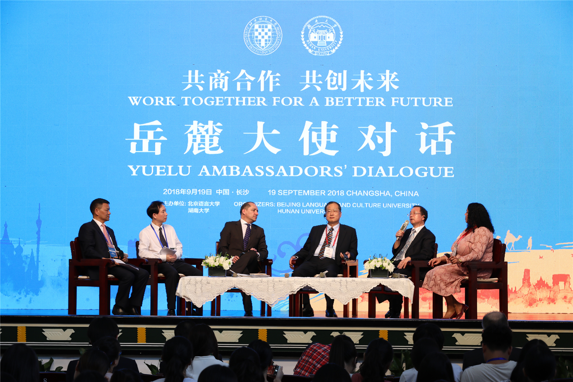 9月19日下午,在首届世界语言资源保护大会期间,岳麓大使对话在千年学府湖南大学党委宣传部(新闻办公室)举行。