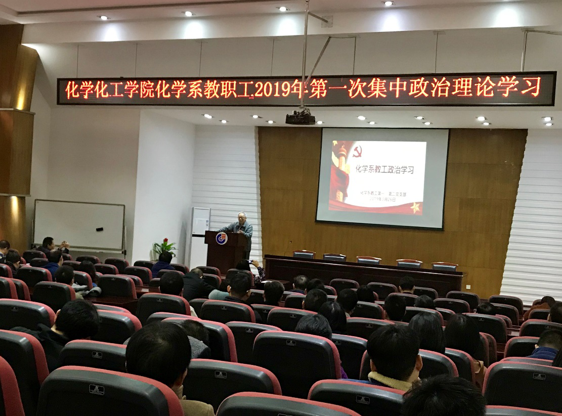 3月26日,化学化工学院化学系全体教职工开展第一次集中政治理论学习,认真学习全国两会精神、《中共中央关于加强党的政治建设的意见》精神、全国高校思想政治理论课教师座谈会精神。